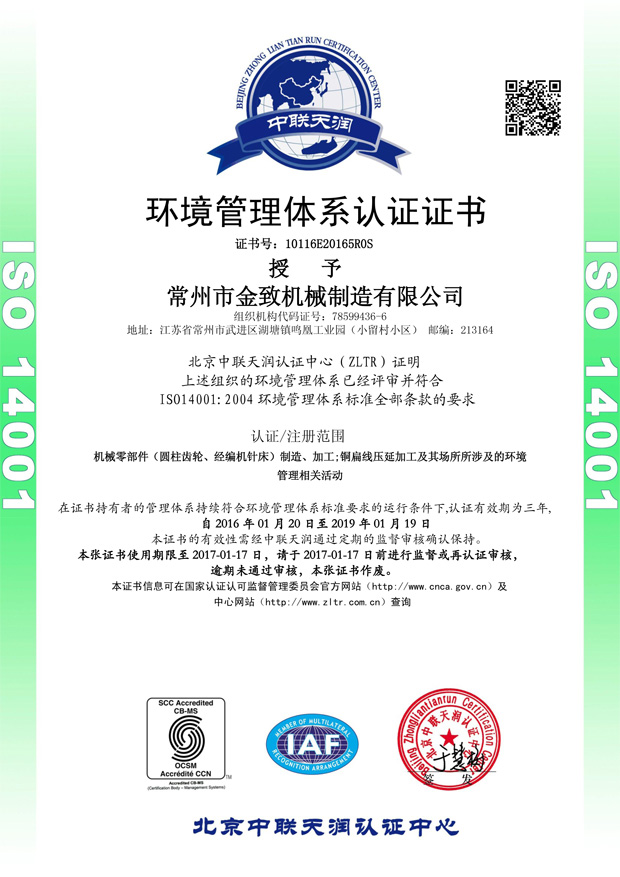 公司通過(guò)ISO14001:2004環(huán)境管理體系認(rèn)證證書(shū)